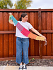 The sample was knit with seven 20-gram mini skeins of Biography Sock by the Yarnbrary. Even the widest section uses no more than 15 grams so you can also use scraps and leftovers. You can also knit a mini version with only 40 grams of fingering weight yarn, perfect for gift-knitting!
