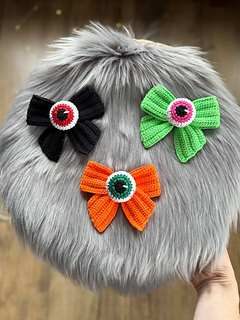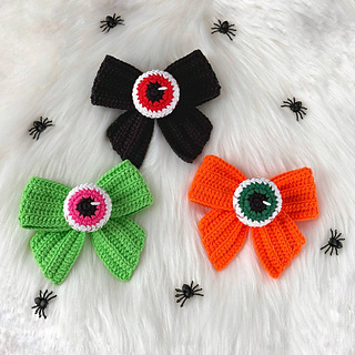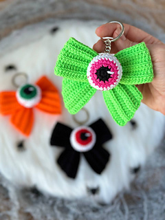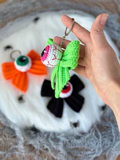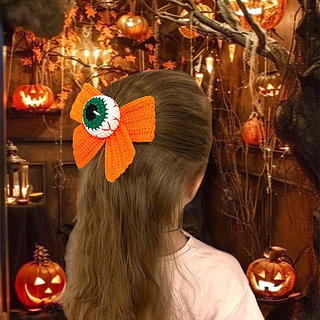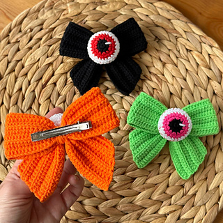 You’ll find here crochet pattern for Bows with an eyeball Halloween Hair Clips & Keychains. This fun amigurumi PDF pattern includes written instructions and step by step pictures and video that explain how to crochet these hair clips & Keychains.