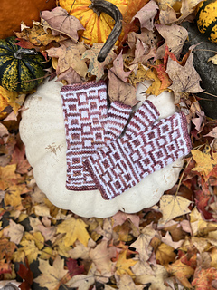 These graphic mitts are a great way to use up those partial skeins. Stitch pattern is a traditional mosaic pattern shown only as a chart. The cuff uses the same pattern but is worked in garter stitch for added stability around the wrist. Both a Cuff and Hand chart are included in the pattern. Length of hand and thumb are easily customized for bigger hands.