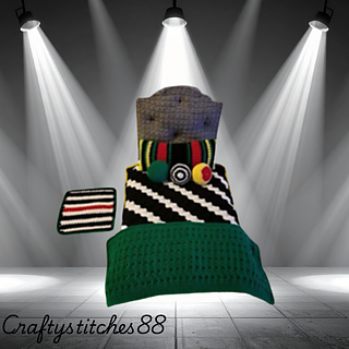 A fun fall crochet bedding set for the 18* doll. A blanket to cover your doll up, a throw for across the bottom, 3 pillows for her comfort and a sweet little matt for him to keep his toes warm when she gets up. A great little set to make for a boy doll as well for a girl doll.