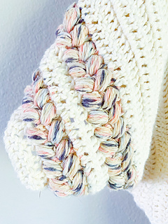 • The braided puff stitch used is slightly different from others, so please watch the youtube tutorial on how to do it. My method keeps the braids more “square” and even to the rest of the fabric and will affect your stitch count for the future rows if you don’t use this method.