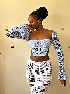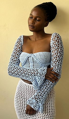 Introducing our newest summer statement piece – the Crochet Braided Rope corset Top with Floral Mesh Crochet Bell Sleeves by ShylerCrochets!