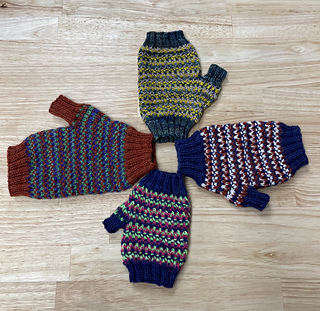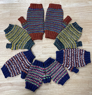 This pattern creates a “uni-hand” mitt which can be worn on either the right or left hand so construction is identical for each mitt.
