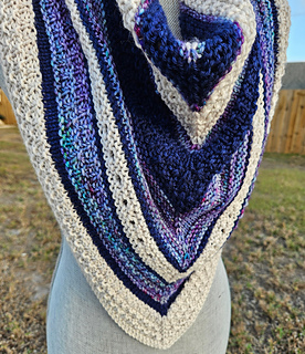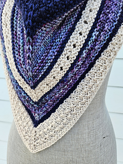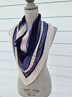 Breathing Room is a three-color dk weight bandana cowl that starts at the top center and is worked back and forth initially and then joined in the round.