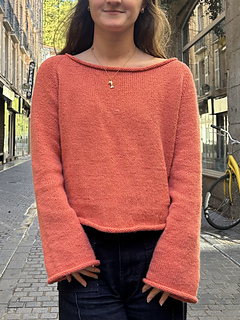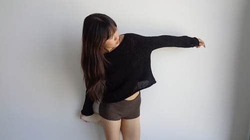 The length of the blouse can be easily modified: the pattern suggests to knit 40-55cm. You can measure the length of a blouse/tee/sweater you like and knit that length. Take into consideration that a rolled hem takes away 2-3 cm from the length.