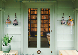 Crocheted with waistcoat stitch, the fabric is denser than usual to create structure. You don’t have to add the hanging ring, the baskets will stand up on their own, making the perfect project bag or plant pot.