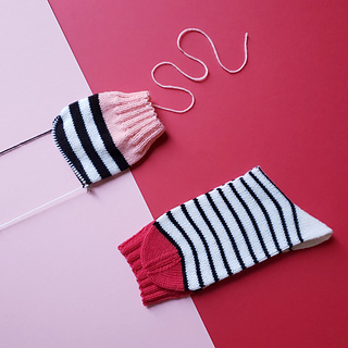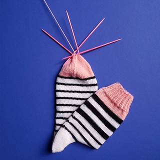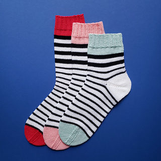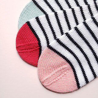 Cast-on, knit and purl stitches, knitting in rows, knitting in the rounds, colour changes in the rounds, Jogless Stripes, Short-Row Heel, double stitches, knit 2 stitches together.