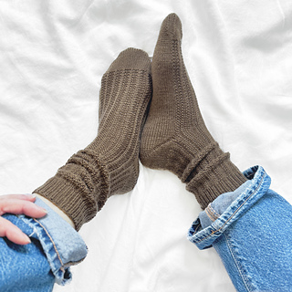 The Briar Cottage Socks are worked cuff-down, their cozy textured stripes wrapping the foot like the beams and timbers of an old cottage. A boomerang heel, the Goldilocks of all heels, fits just right, leading to a classic wedge toe that snuggles like the warmest embrace.