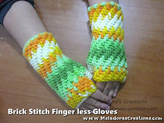 Crochet Fingerless Gloves Pattern use the Thick Mesh / Brick stitch for crochet. This stitch overlays so it keeps your hands very warm where it’s covered. Because of the way the stitch is made it gives you room to blend colors beautifully! I hope you have fun with this one. Enjoy!