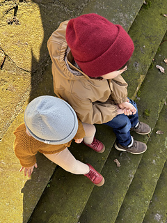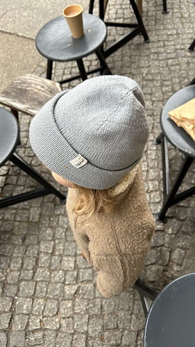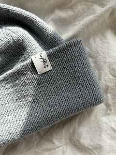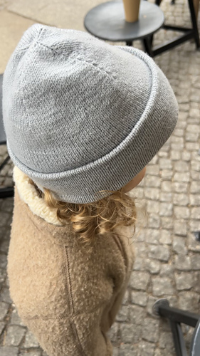 The beige melange coloured beanie is knitted with two strands of Compatible Cashmere by Knitting for Olive held together, in the colours Cream and Bark. The light blue hat is knitted in Merino by Knitting for Olive in the colour soft blue (one strand). The red hat is knitted with Cardiff Cashmere Classic, in the colour - Granata 628 (one strand).