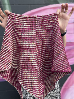 Note: because brioche stitches stretch and relax so much during the blocking process, it is more important to get close to the unblocked gauge in order to use the same approximate yardage as the pattern. When blocking my sample, I gently stretched the shawl to allow each stitch to spread and sit flat, to invite even more visual interaction between the colours. You may wish to block your project more or less than the sample shawls, which will affect your finished gauge.