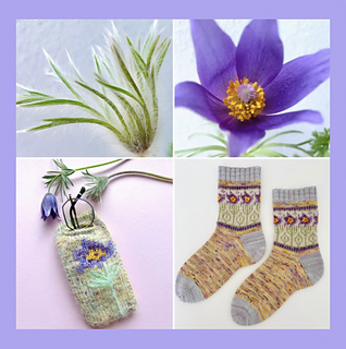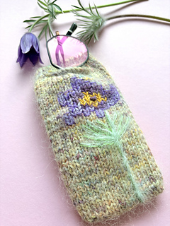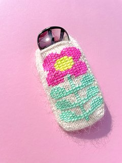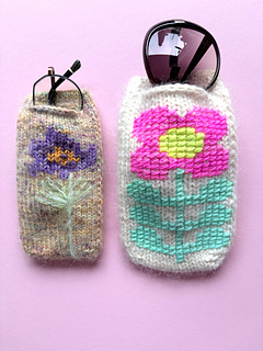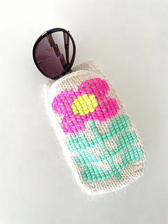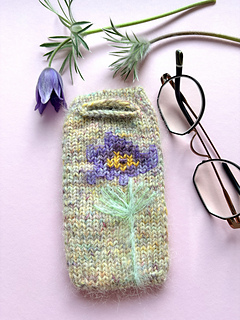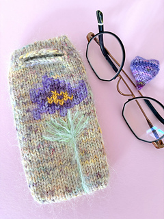 This glasses case with a large flower is knitted from the tip and can be easily adapted to any glasses shape.