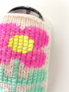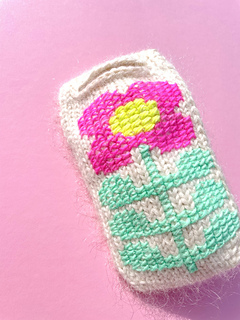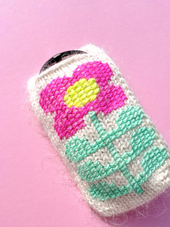 The design is defined by the embroidered flower motif, worked in cross stich, which gives the simple knitted fabric a special, slightly three-dimensional effect and makes the case a real eye-catcher.