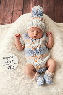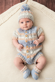 The matching Bobble hat and Booties perfectly match this beautiful romper.