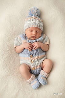 A beautiful 3 piece Romper set knitted with an off centre opening.