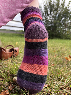 The sock is knit with fingering weight yarn (approx 420m/100g).