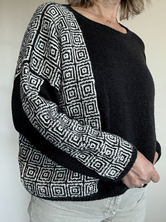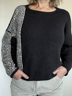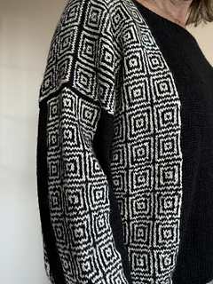 BRYANA is a jacquard sweater that is a real pleasure to knit simple and almost addictive once you reach the colorwork section. The combination of two colors gives you a great opportunity to create your own unique version. The pattern can be worked with a light yarn that stands out on a dark background, as shown here, but you could also imagine a dark motif on a light background — I’ll probably try that version soon. Now it’s your turn to play and design your own!