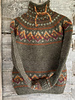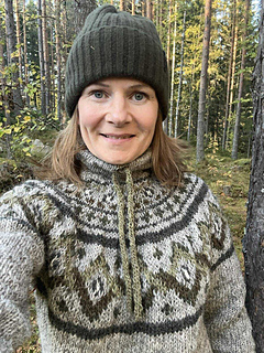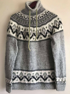 Like many Icelandic knits, the sleeves are knitted first, then the body and finally the yoke, which joins them together to form the finished garment. You can adjust the height of the collar to suit your needs. The shirt uses simple techniques, so you can enjoy the flow of knitting.