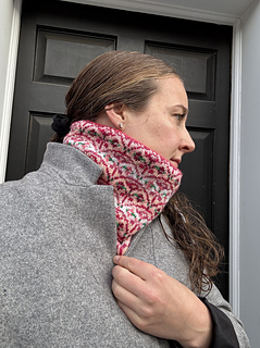 This cowl is knitted in one piece starting with a provisional cast-on. You will work the colorwork chart until the cowl is slightly taller than you want it to be, then decrease and switch to a soft yarn for the lining. Once this is complete, you’ll increase again, unpick the provisional cast-on, and use a three-needle bind-off to graft the ends together.