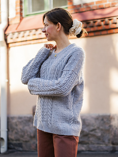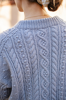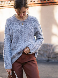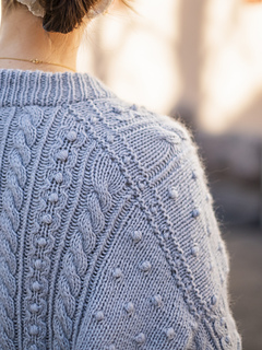 The Bubblelicious sweater is a delight of textures and a real showstopper piece that you’ll want to wear on repeat! The playful bobbles together with the classic cable motifs in the middle of both the front and back make this a really fun project to knit.