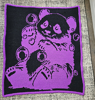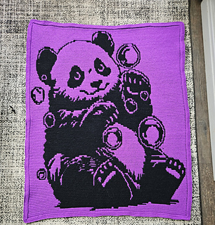 Panda playing in Bubbles Reversible Mosaic and Mosaic Overlay Crochet styles. The downloads include both the written directions and a separate graph for both styles. If you need the pattern graph in more than 1 page layout, please message me your email address and request after purchase and I will email them in a bigger layout (Etsy limits the number of attachments).