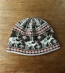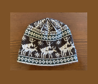 I originally designed this hat as a gag gift for my dad, but he got so many compliments on it that I knew I had to make more and write up the pattern! The chart was modified from the fornicating deer chart by Anne Rutten. This hat is knit seamlessly in the round from the bottom-up and includes a folded brim for extra ear warmth and a clean finished edge.