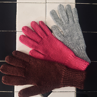 Symmetrical and bottom-up, these basic gloves knitted are in the round with a thumb gusset, and the only seam is the ribbed cuff!