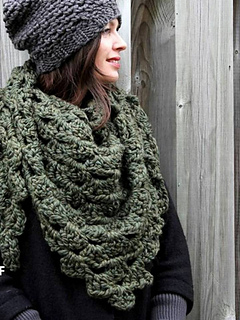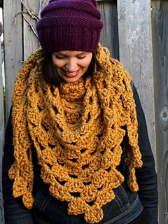Bulky Shells Crochet Shawl / Triangle Scarf