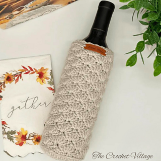 Create a beautiful handmade wine gift with this crochet wine bottle cover pattern! This wine cozy crochet pattern features the elegant shell stitch and is perfect for making thoughtful, reusable gifts for hostess presents, holidays, or craft fairs.