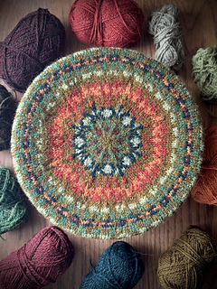 The beret is a stranded knitting design, worked from the bottom up, using one or two shades of yarn in each round. Please note: There are three rounds on the crown which are knitted using three shades ~ rounds 15, 19 & 21. Knit the three rounds in the usual way, carrying floated yarn of two shades, rather than one shade.