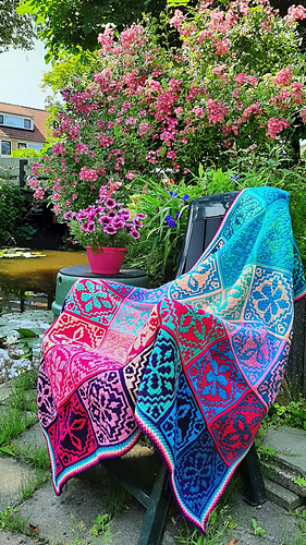 Het patroon is beschikbaar in het Nederlands en Engels (beide inbegrepen in de aankoop). Het patroon bevat alle informatie van kleuren en kleurverdelingen die voor de voorbeelden zijn gebruikt. Ook bevat het tips om je eigen kleurverdeling te maken. Maar je kunt natuurlijk ook helemaal je eigen plan trekken en bijvoorbeeld je restjes opmaken. De aankoop bevat zowel een uitgeschreven patronen als telpatronen.