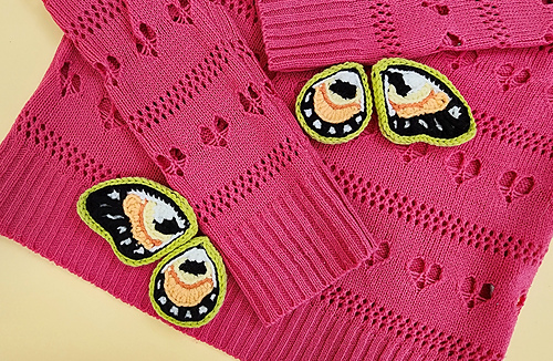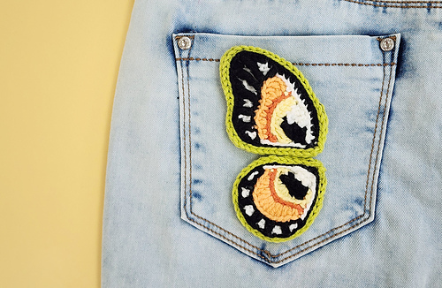 Although the wings contain a multitude of colour changes, there will be zero loose ends to weave in. Instead, the loose ends will be secured with a simple knot and sandwiched away between the 2 layers of the wings, which only takes a few minutes.