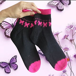 Butterfly socks have a toe-up construction, meaning they are made from the toe to the shaft, and are designed in three different sizes. For each size, the widest part of the instep has been measured, which you’ll need to measure to determine your size.