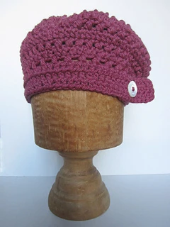 Button is a simple crocheted beret style hat, made in the round in alternate rows of HDC and puffs. The hat is finished with a feature button on the band. It’s intended for an adult size head, but it will fit a teenager size head too!