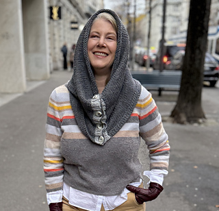 Sophisticated minimalism! Slip the Button Up Hooded Cowl on and go! Need a little extra cozy? There is plenty of ease to pull it up over your head for an easy hood. A rectangular piece with one row of increases creates a bit of shape that drapes gently over the shoulders. It’s the perfect project to hone-in on the skill of picking up stitches. The straight side edge pieces make it easy to identify which holes to go through. Choose two of your favorite contrasting colors of Sweater and get started on this chic wardrobe enhancing knit. Knit on size 10 needles in Blue Sky Fibers Sweater, a soft and squishy durable blend of super wash wool and cotton – a versatile yarn that gets better with wear! The Button Up Hooded Cowl adds simple and smart polish to your wardrobe.