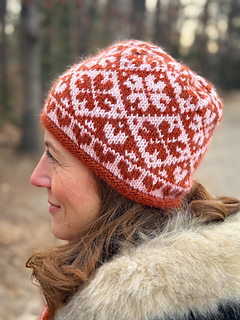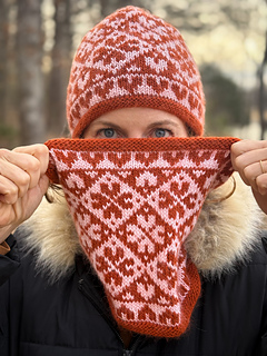 Introducing the By Heart Set! Worked seamlessly in the round in delightfully squishy Suri Merino, the cozy elegance of rusty Autumn, with the soft pale pink glow of Dawn, makes an elegant and warm combination. Fully charted, stranded colorwork hearts march along the edges and join forces to form heart clovers, making this set a sweet (and slightly mischievous) choice for the bitterly cold months—perfect for Galentine’s and St. Patrick’s Day alike.