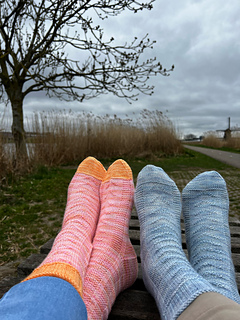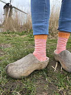 The instructions in this pattern booklet are combined under one heading and marked with colors: (Dutch), (English), and (German). Because the instructions for knitting the heel and toe are a bit more extensive, I’ve created separate headings for each language there. It’s all very straightforward. I wish you lots of knitting fun!