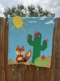 Meet Fritz the Fox — your next cozy corner-to-corner adventure! This desert-inspired baby blanket brings a friendly little fox to life beneath a bright sky and golden sun, framed by cactus blooms. Designed for comfort and charm, this easy-level crochet project works up beautifully for nurseries, baby showers, or woodland-themed gifts.