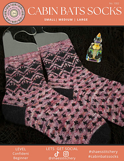 The Cabin Bats Sock Pattern is designed to match perfectly with our Cabin Bats Quilt Pattern. The Cabin Bats sock pattern is a beginner friendly color-work sock pattern featuring adorable bats framed in a cabin like border with accents running through the foot of the sock. The sock is constructed with a ribbed cuff, shadow wrap heel, and decreased and grafted toe.