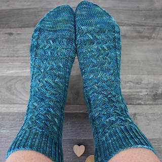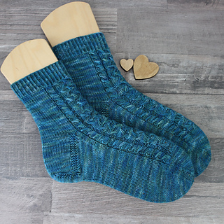 The Cabin Comfort Socks are worked from the cuff doewn and knitted in the rond. The pattern includes a chart for the cable pattern.