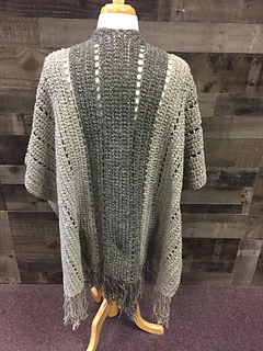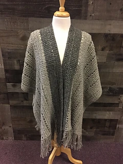 Cabin Fever is a ruana, which is a cross between a wrap and a poncho. It easily drapes over the shoulders, and fits over any outfit. It can even be worn over a coat for added warmth on those bitter cold winter days.