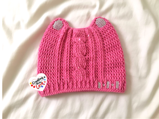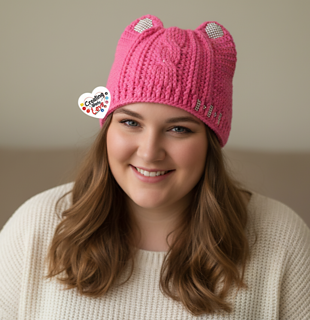 Inspired By The Women“s March & Pink Pussy Cat Hats I wanted A hat with A bit more PAZAZZ, so I give you A cable cat hat with Bling