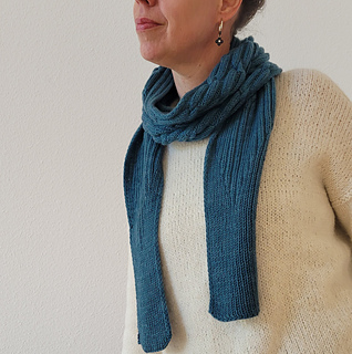 Bei diesem Schal beginnst Du mit einem Rippenmuster, das die Enden des Schals bildet. Das Rippenmuster wird sukzessive erweitert, und dann beginnt das Zopfmuster von der Mitte bis zum Rand, indem weitere Zöpfe eingefügt werden. Wenn Du den Schal verlängern möchtest – unter Berücksichtigung des dadurch benötigten Garns – kannst Du mehrere Rapporte arbeiten, bevor Du das Zopfmuster sukzessive verkleinerst und den ersten Teil spiegelst.