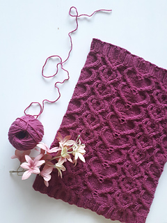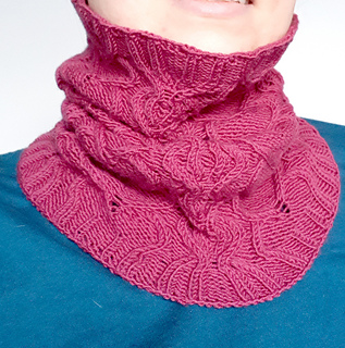 The sample cowl is knit with Drops Baby merino and 80g was enough.