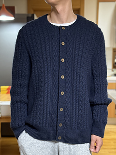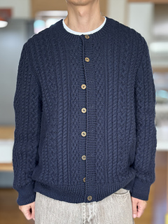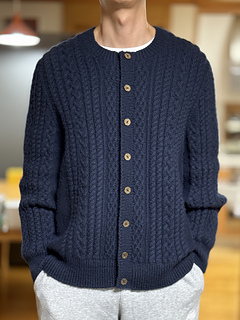 The cardigan is worked top-down, beginning with the back. Stitches are then picked up and knitted for the left and right fronts. Next, stitches are picked up along the side edges of the fronts to form the sleeves, and all pieces are joined to continue working down the body and sleeves in one piece.