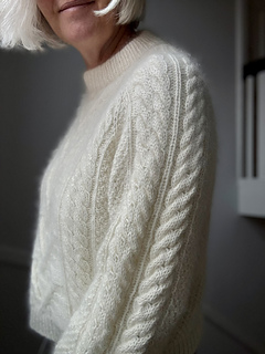 basic sweater that is simultaneously both classic and timeless. The pattern comes with 3 different yarn choices, all of which add something different to the sweater.