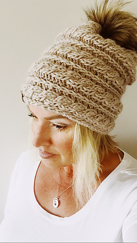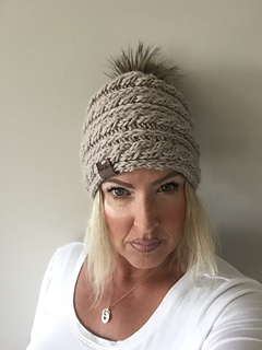 This is a beautifully designed cable hat in which the cables are worked back and forth in rows and the hat will have a hidden seam up the back. The cables lay in a horizontal direction once the hat is worked up, which makes it unique.