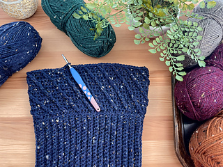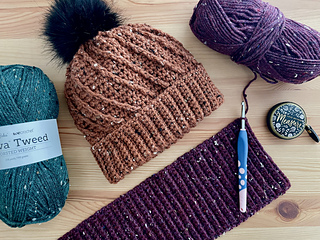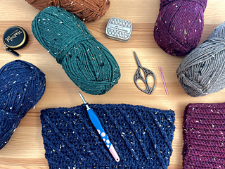 Size 4 (Medium Worsted) weight yarn, We Crochet Brava Tweed used in samples