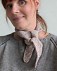 The scarf is worked flat in garter stitch. It narrows towards the ends and is wider at the center. First, stitches are increased, then the middle section is worked (you can decide here if you want to add more length), and finally the added stitches are decreased. The ends of the scarf are finished by gathering them closed.