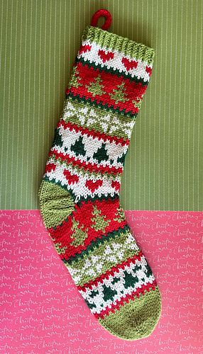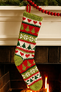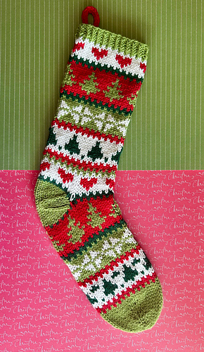 A holiday classic, knitted with care and Christmas spirit. This stocking-style sock is available in flat or circular knit, with a single-color toe and a last minute heel.